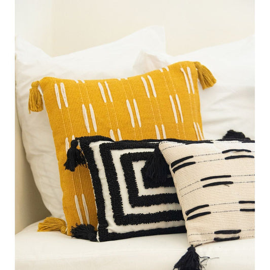 Coussin Tricoté Jaune Blanc 46x46cm